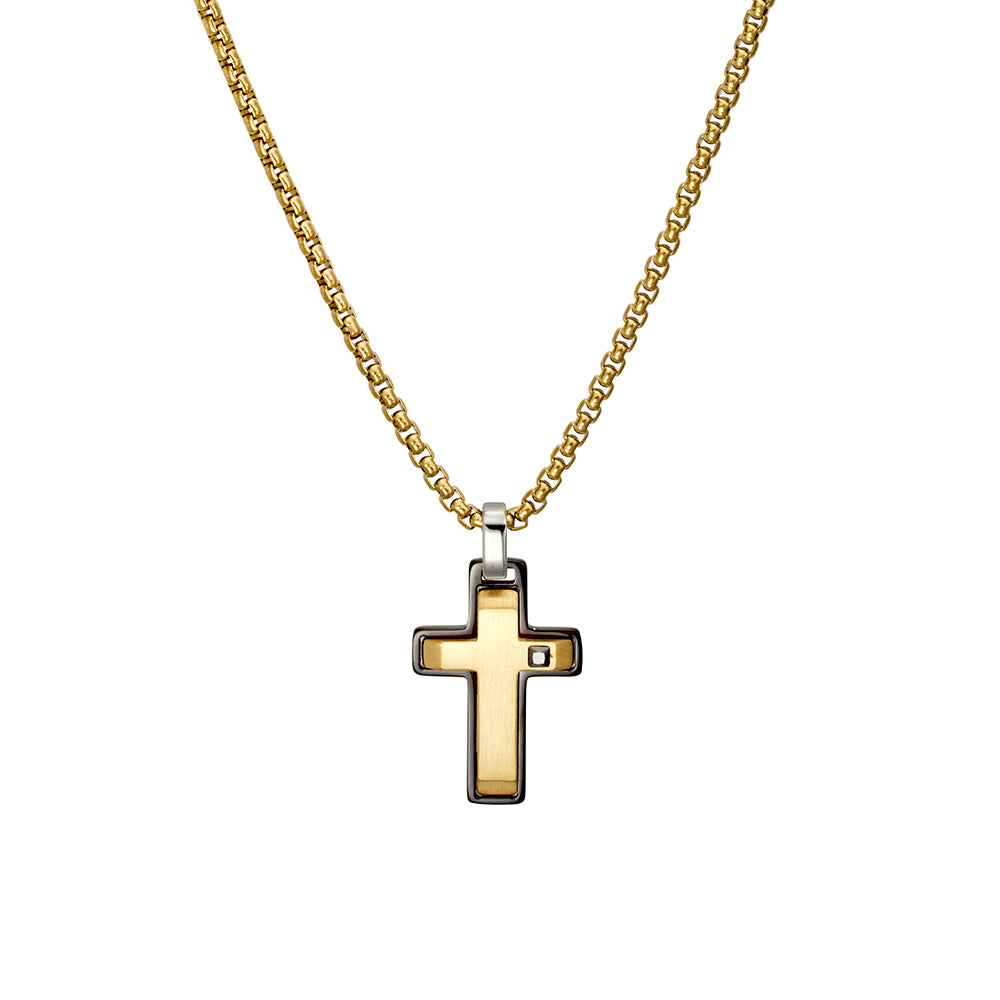 Blaze stainless steel men’s black and gold plated cross pendant necklace