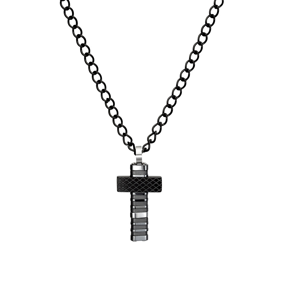 Blaze stainless steel men’s mixed pattern cross necklace with matte black chain